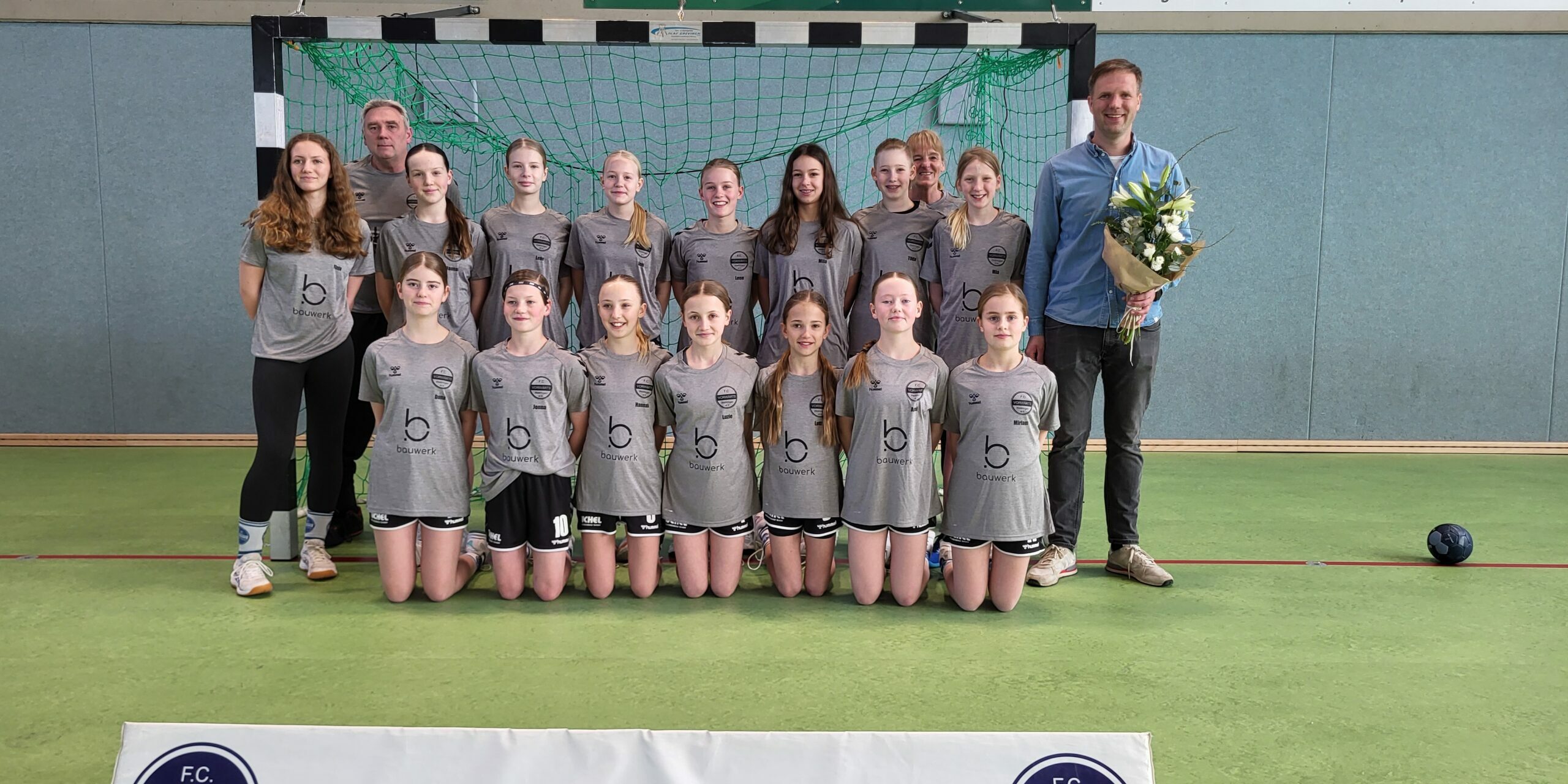 Zum letzten Saisonspiel empfingen die weiblichen D1 Handballerinnen den Nachbarn aus Neuenkirchen (D2). Die Meisterschaft in der Münsterland-Liga konnten sich die Vorwärtslerinnen bereits im letzten Spiel gegen Ammeloe/Ellewick sichern. Vor dem Derbyspiel gegen Neuenkirchen überraschten das Trainerteam ihre Schützlinge mit einem Sonder-Meister T-Shirt, welches gleich mit stolzer Brust zum Aufwärmprogramm übergestreift wurde. Vorab durfte das Team sich mit dem Sponsor Tobias Ewering vom Wettringer Unternehmen Bauwerk für das Mannschaftsfoto aufstellen.