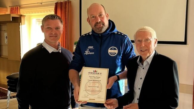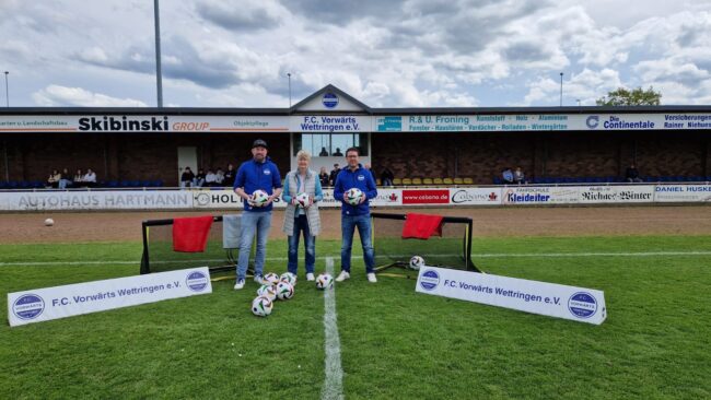 Der FC Vorwärts hat bei einer Veranstaltung im Rahmen des DFB-Punktespiels den Goldstatus erreicht und wertvolle Prämien erhalten. Marianne Finke-Holtz vom FLVW überreichte Fußbälle, Laibchen, Mini-Tore und einen Gutschein über 250€ für Trainingsutensilien bei Teamsport-Bedarf an die Abteilungsleiter Alexander Rehers und Frank Wellkamp.